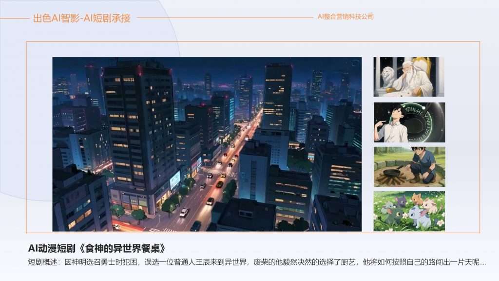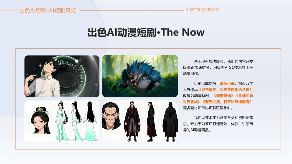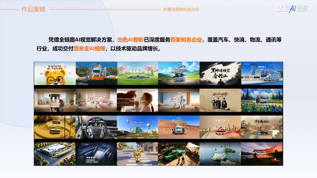 出色AI智影是出类互动旗下以AI产学研为导向的创意厂牌,专注于AI视觉解决方案,致力于以AIGC技术重构视觉内容的生产与传播方式。我们拥有一支规模近百人的专业团队,涵盖资深策划、影视制作人及多名AIGC训练师,具备从创意生成到成品输出的全链路技术实力,核心业务包括:AI影视广告定制、AI短剧承制,以及AI线上线下培训体系,全面覆盖视觉内容领域的多元需求。